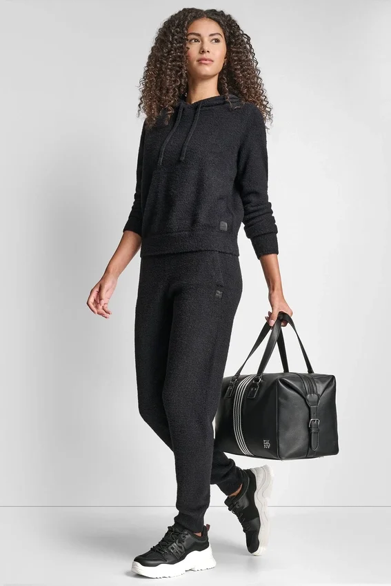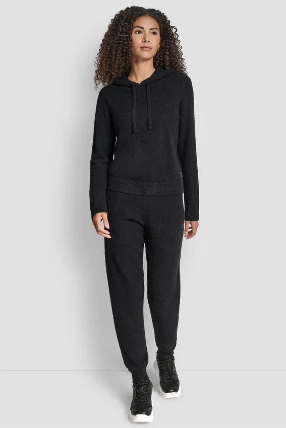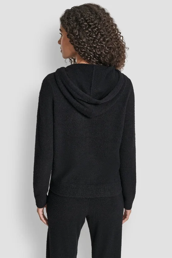 Sudadera con capucha de hilo de plumas, cordones y logotipo en el mismo tono