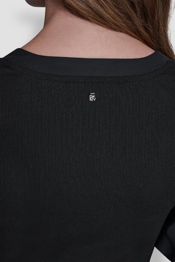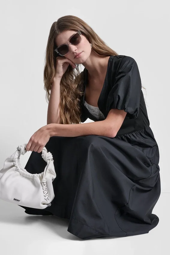 Una versión moderna del vestido midi, este modelo de estilo Henley acanalado cuenta con mangas abullonadas femeninas y una falda de popelín impecable para una silueta elegante y a la vez desenfadada.