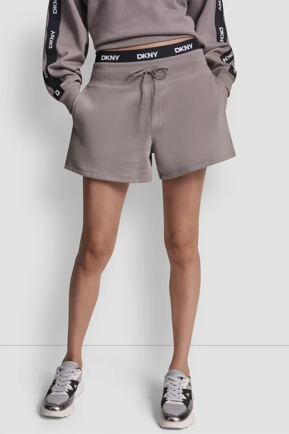- Pantalones cortos de sudadera de talle alto con logotipo en la cintura