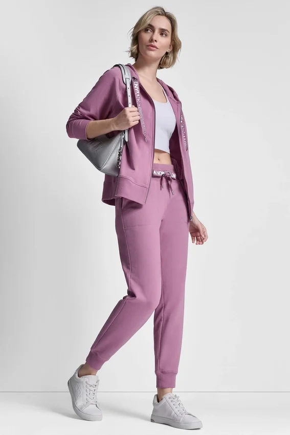 Diseñados para un estilo de vida que nunca se detiene, estos pantalones Jogger de talle alto se mueven contigo; combínalos con un sujetador tipo sports bra con logo y un bolso de bandolera de malla.