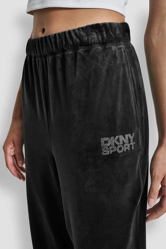 Dale un toque especial a tu look informal con estos pantalones Jogger de talle alto y corte holgado, adornados con el logotipo de DKNY con pedrería para un brillo natural. Diseñados en un tejido de punto suave y cómodo, con corte recto y puños, ofrecen el equilibrio perfecto entre la comodidad desenfadada y el estilo refinado para el día a día.