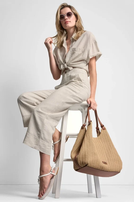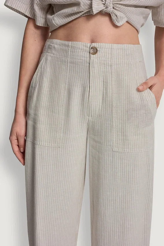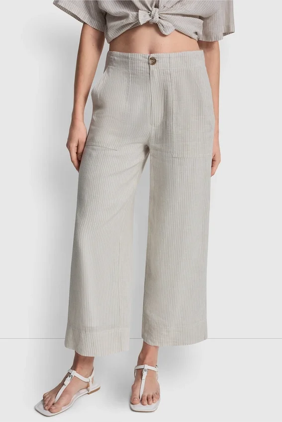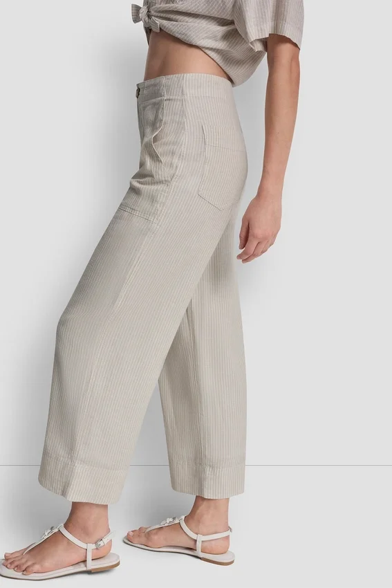 Cierre con cremallera y botones. Largo acortado. Silueta de pierna ancha. Bolsillos delanteros (diagonales). Dos bolsillos de la espalda. Confección de lino y rayón. 55 % lino, 45 % viscosa de rayón. Lavar a máquina en frío con colores similares, ciclo delicado; usar solo blanqueador sin cloro cuando sea necesario; secar en secadora en ciclo delicado a baja temperatura; planchar a baja temperatura si es necesario. Importado. N.º de estilo: Dj5P3058
