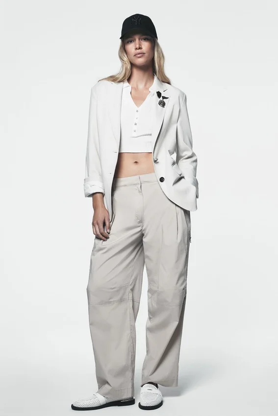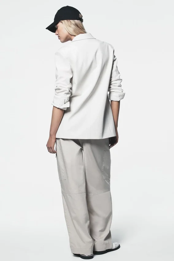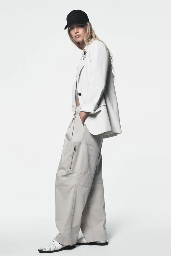 La funcionalidad se une a la elegancia cotidiana en estos pantalones cargo de popelín de algodón. Diseñados con un corte holgado pero estilizado, aportan el toque justo de estilo a los suéteres suaves, las camisas impecables o una camiseta de tirantes por dentro; son cómodos, versátiles y hechos para moverse contigo.