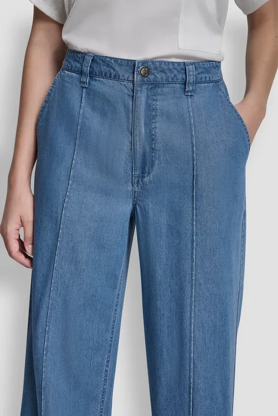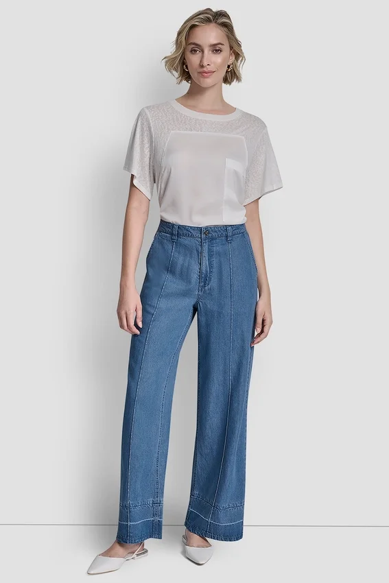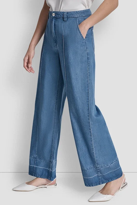 - Pantalón suave de talle alto, con costuras y pierna ancha