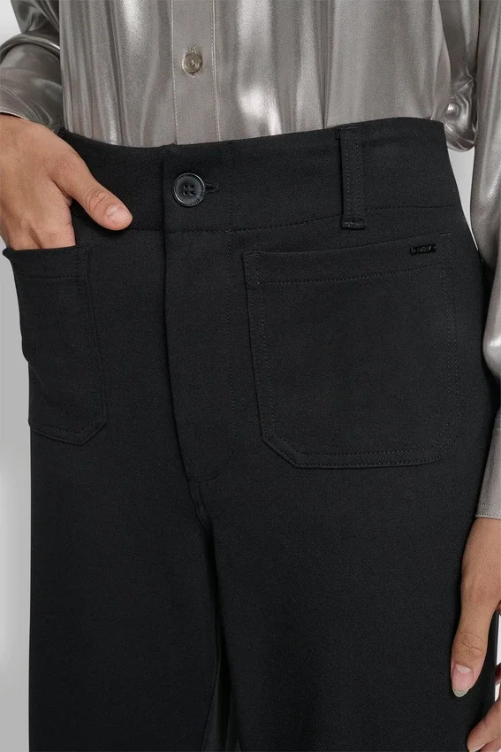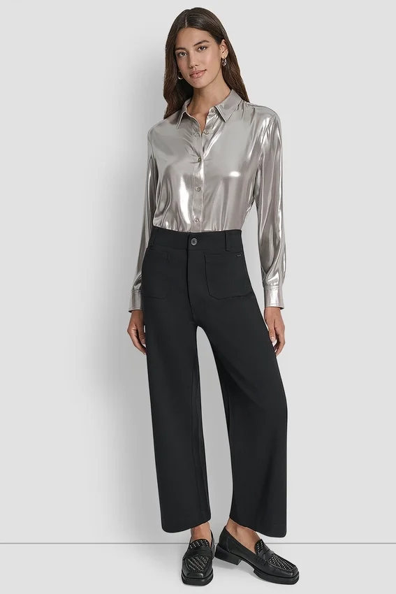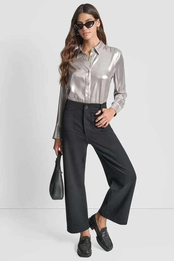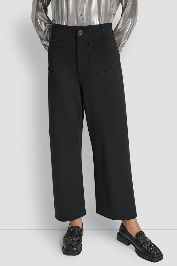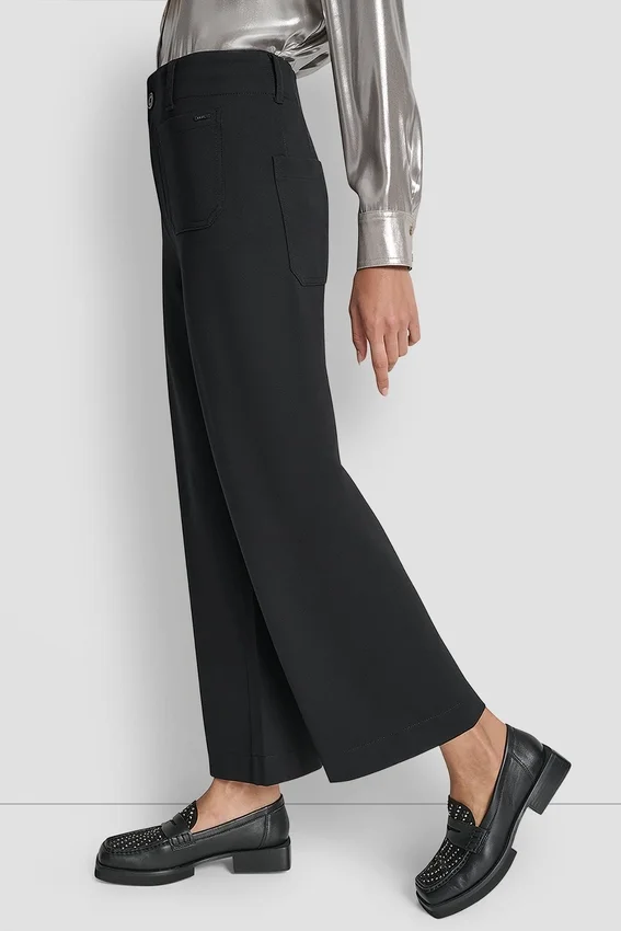 - Pantalones de tiro alto, corte corto y pierna ancha