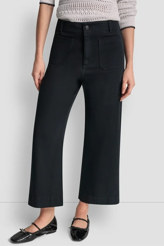 Una combinación perfecta de elegancia y comodidad, estos pantalones de tiro alto, corte corto y pierna ancha están confeccionados en sarga elástica texturizada para ofrecer estructura con la elasticidad justa.