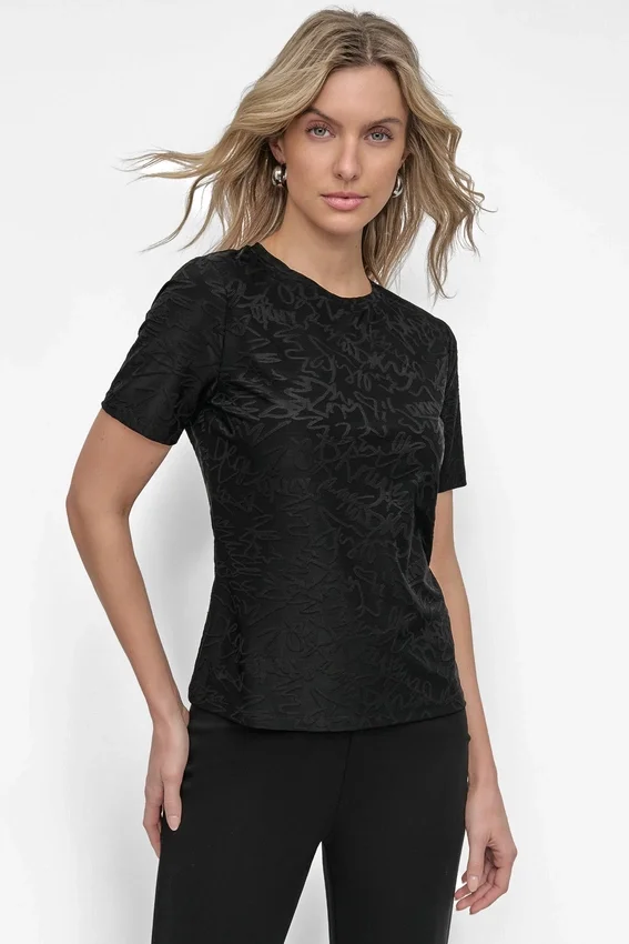 Cuello redondo; Se pone por la cabeza Diseño de grafitis en toda la prenda Mangas cortas 87 % poliéster, 13 % spandex Lavar a máquina Importado Estilo: P5Bhfamc
