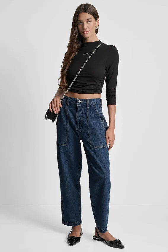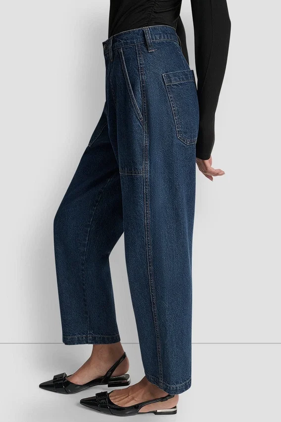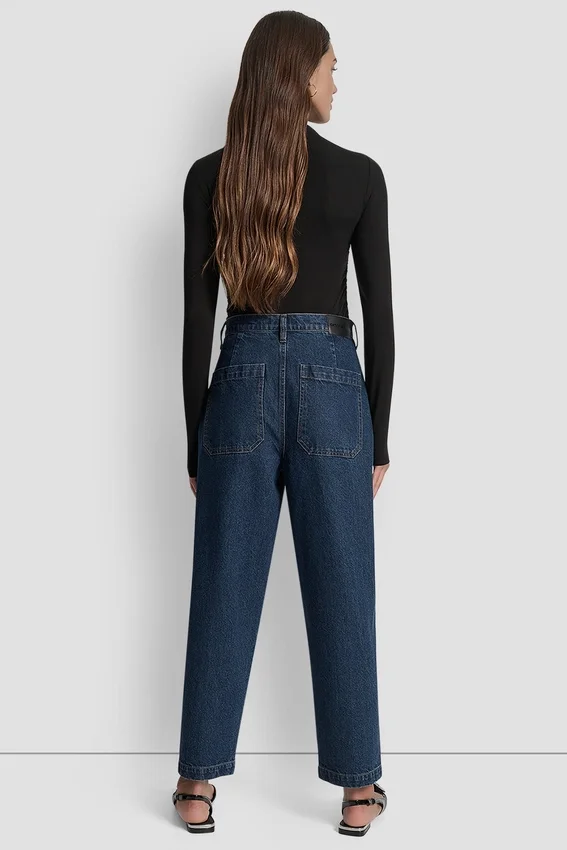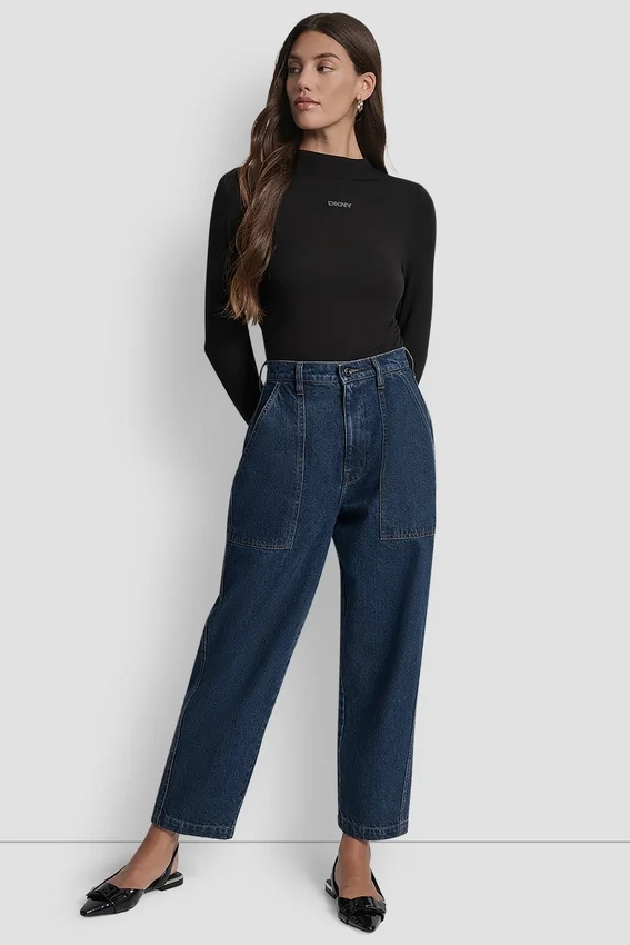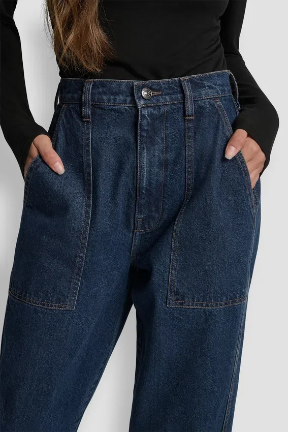 Una prenda básica y versátil para el día a día, estos vaqueros de talle alto presentan una silueta de inspiración utilitaria con un lavado de tono medio. Confeccionados en denim 100 % algodón, ofrecen un corte favorecedor de talle alto y prácticos detalles en los bolsillos.