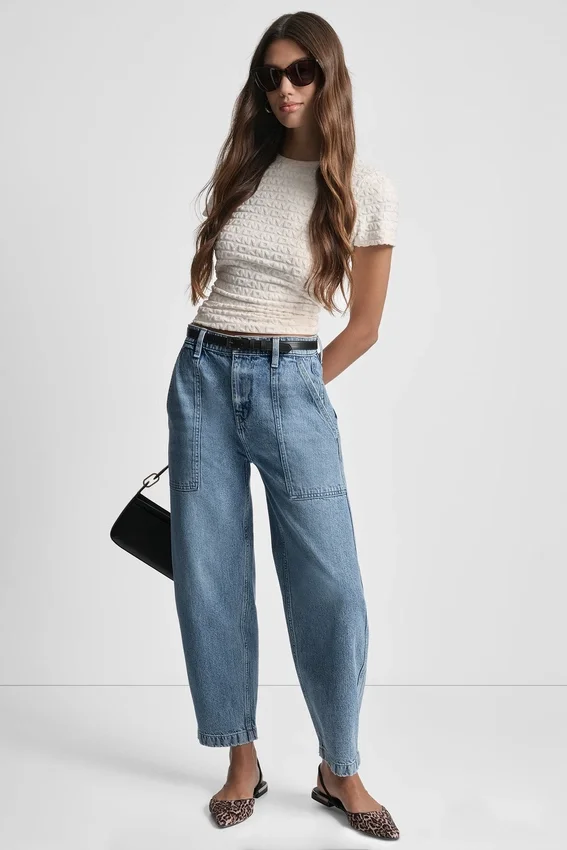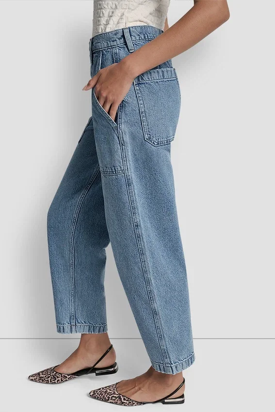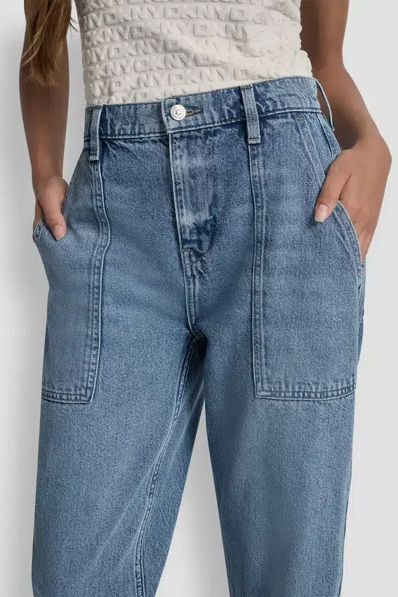 Una prenda básica y versátil para el día a día, estos vaqueros de talle alto presentan una silueta de inspiración utilitaria con un lavado de tono medio. Confeccionados en denim 100 % algodón, ofrecen un corte favorecedor de talle alto y prácticos detalles en los bolsillos.