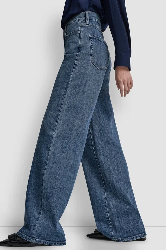 Con un corte holgado pero refinado, estos vaqueros de talle alto y corte ancho aportan un toque moderno al denim clásico.