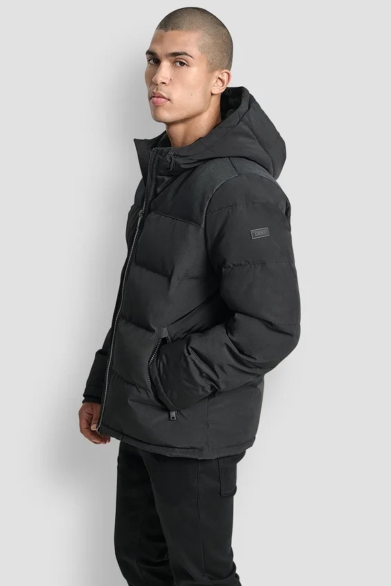 Plumífero con capucha DKNY Ac Mix Media: un plumífero moderno con capucha diseñado para ofrecer calidez y estilo. Confeccionado con una mezcla tejida de 85 % poliéster y 15 % algodón para mayor durabilidad y comodidad. Cierre frontal con cremallera y capucha ajustable para un uso versátil. Perfecto para combinar con atuendos casuales o de calle. Importado. Estilo n.º: Dx9Mp802