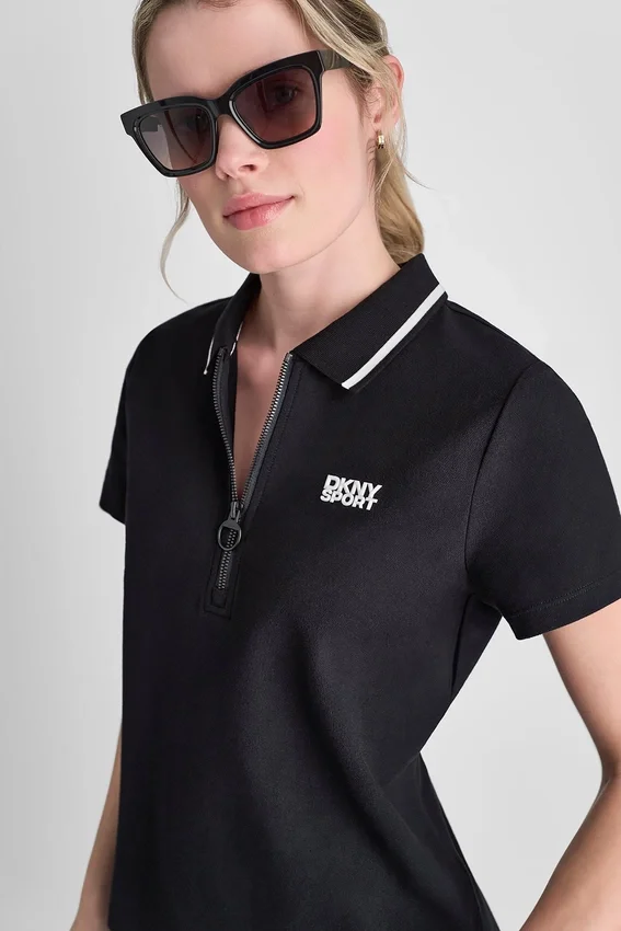 De estilo deportivo y elegante, este polo de manga corta cuenta con una tapeta moderna con cremallera y detalles de logotipo bordados. Diseñado en algodón elástico suave para la comodidad diaria, es una prenda esencial y versátil tanto para looks casuales como elegantes.Estilo sin botones con cierre de cremallera