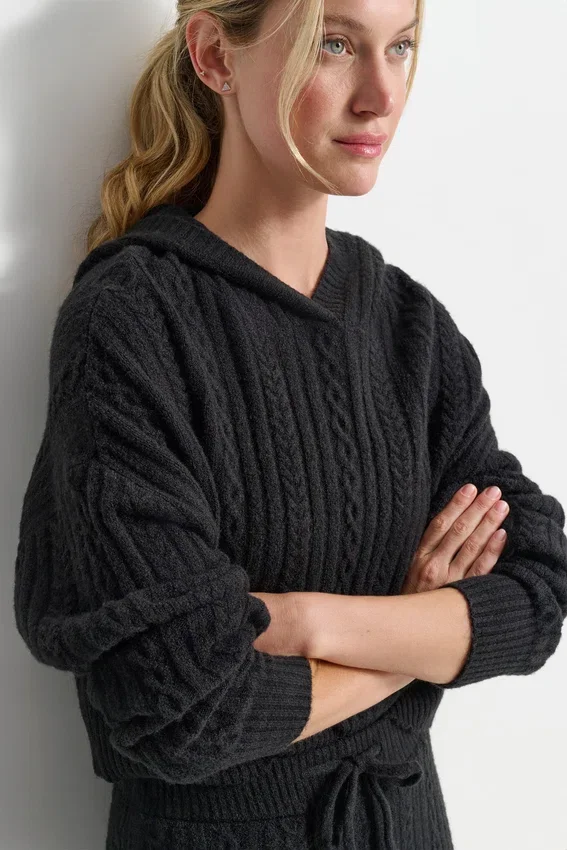 Capucha integrada, manga larga, diseño de punto trenzado, corte recto, dobladillos por encima de las caderas, 58 % acrílico, 40 % nailon, 2 % elastano, origen: importado, estilo: Dp4R6008