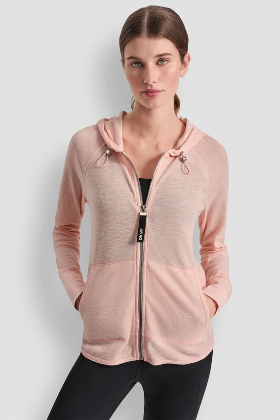 - Chaqueta de manga raglán larga con costuras planas y capucha con cordones elásticos