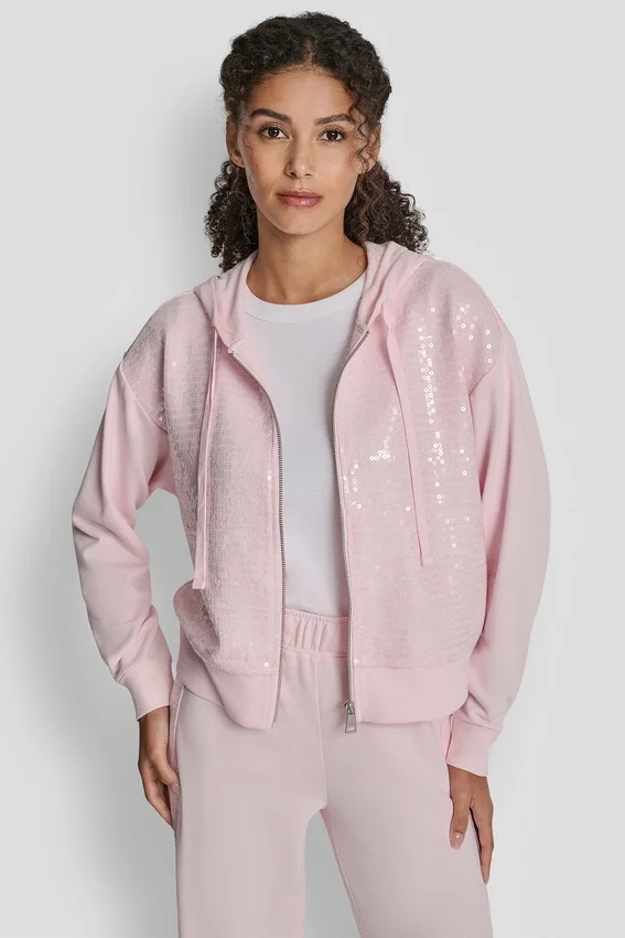 - Sudadera con capucha y cremallera frontal con lentejuelas