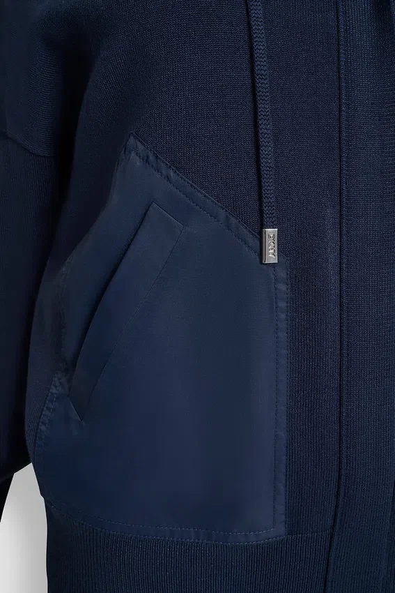 - tejido de punto: principal: 75 % viscosa de rayón, 25 % nailon; bolsillos exteriores: 100 % poliéster