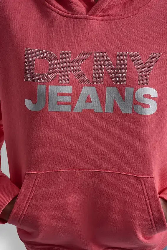 Con un acabado pulido y un toque de brillo, esta sudadera con capucha de manga larga presenta el logotipo de DKNY en pedrería apilada para un estilo sutil pero llamativo. Confeccionada en 100 % algodón, ofrece una comodidad suave y transpirable con un acabado elegante y casual.Escotes