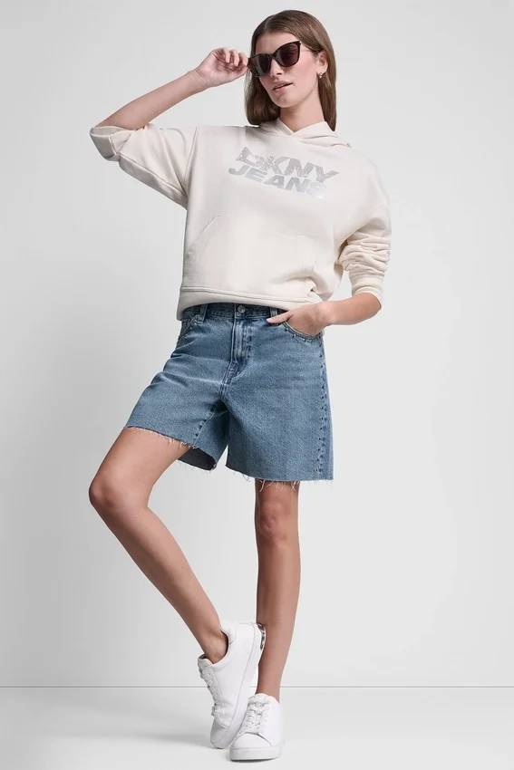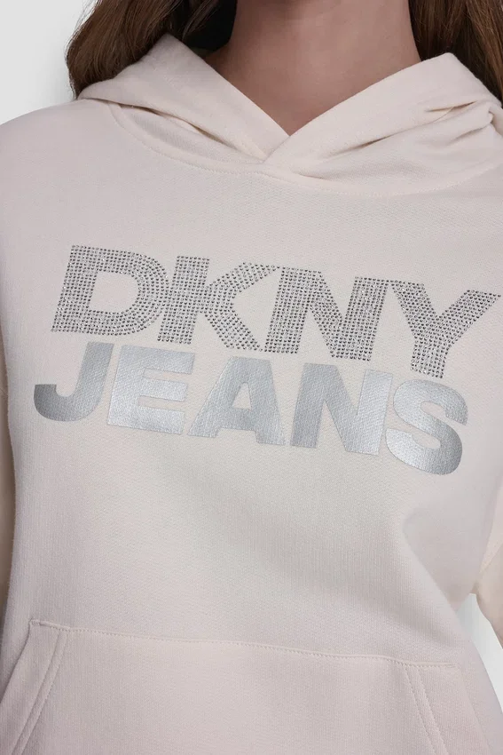 Con un acabado pulido y un toque de brillo, esta sudadera con capucha de manga larga presenta el logotipo de DKNY en pedrería apilada para un estilo sutil pero llamativo. Confeccionada en 100 % algodón, ofrece una comodidad suave y transpirable con un acabado elegante y casual.Escotes