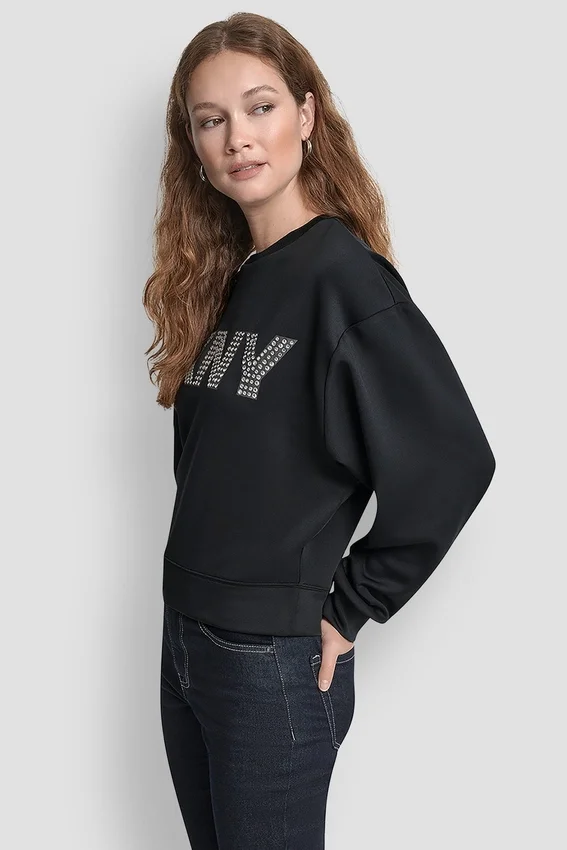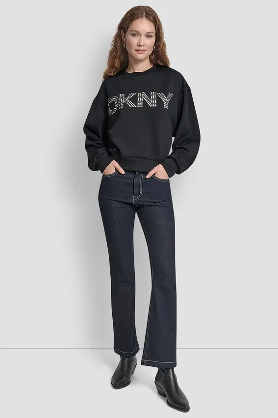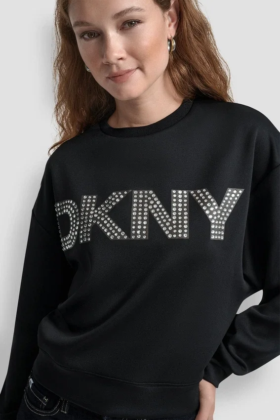 - Mangas largas con estilo clásico de suéter con detalles del logotipo de DKNY