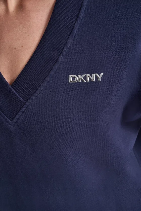 Sudadera con mangas largas caídas, cuello en V profundo y logotipo metálico en forma de burbuja. Sin forro. Mezcla de algodón: 60 % algodón, 40 % poliéster. Lavar a máquina en frío con ciclo delicado, secar en horizontal. Importada. Estilo n.º: Dp6T1644