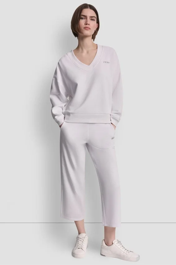 Después de entrenar, ponte esta cómoda sudadera de cuello en V: métela ligeramente por delante en unos pantalones cortos de chándal con el logotipo en la cintura para lograr un look deportivo y chic que te hará sentir fresca, ligera y lista para cualquier cosa.