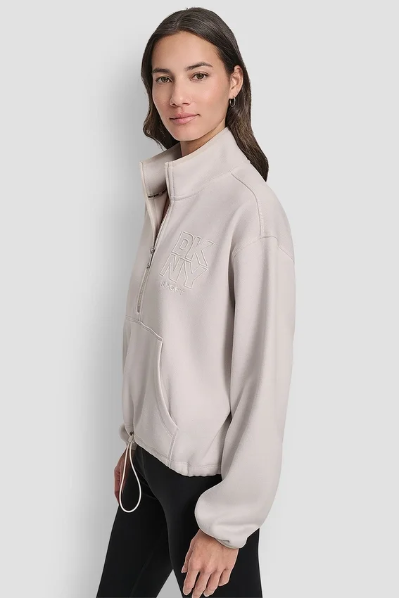 Escotes con solapa, mangas largas, cierre de media cremallera para una cobertura ajustable, corte holgado para facilitar el movimiento, logotipo de DKNY bordado en la parte delantera, tejido de punto 100 % poliéster suave para una mayor comodidad y ligereza, lavar a máquina en frío con colores similares, ciclo delicado, secar en secadora a baja temperatura, no usar lejía, no planchar, no limpiar en seco, importado, estilo n.º