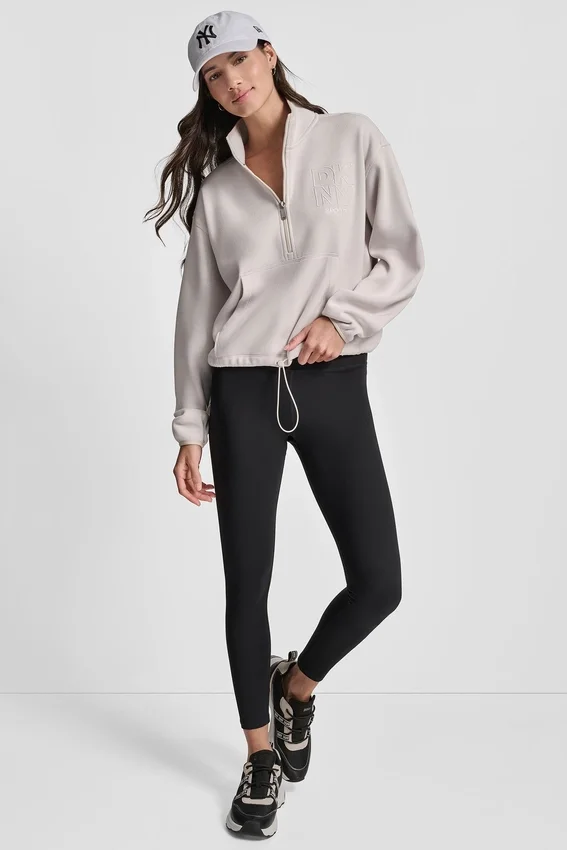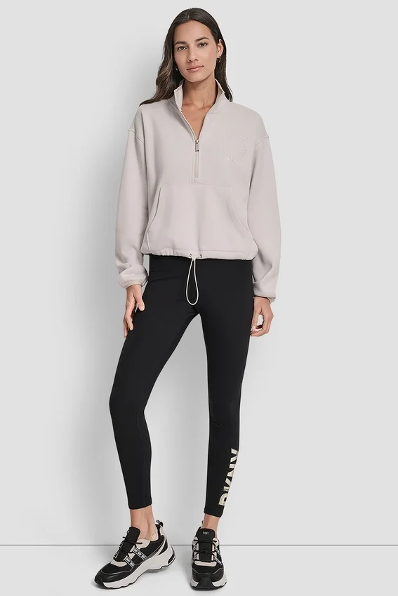 De estilo deportivo y versátil, este suéter con media cremallera combina la comodidad diaria con detalles sofisticados. El bordado con el contorno de DKNY le da un toque moderno, mientras que el escote con solapa y el corte holgado lo hacen perfecto para hacer ejercicio, los fines de semana o para usar en capas cuando estás en movimiento.