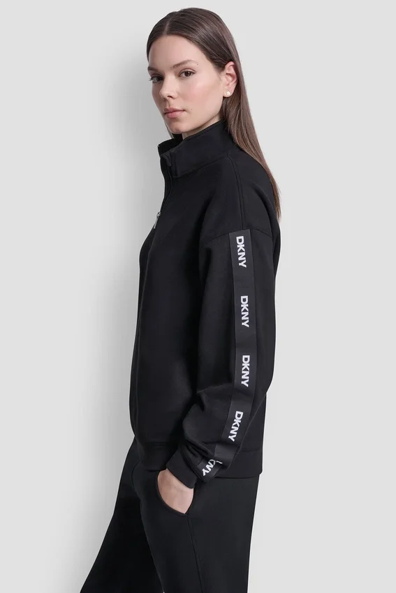 - Sudadera de manga larga con cuello alto, ribeteada con el logotipo y dobladillos elásticos