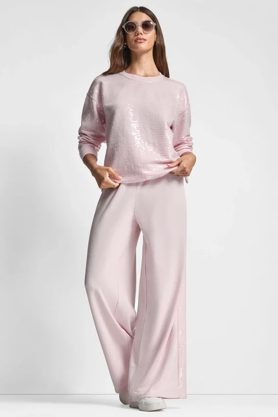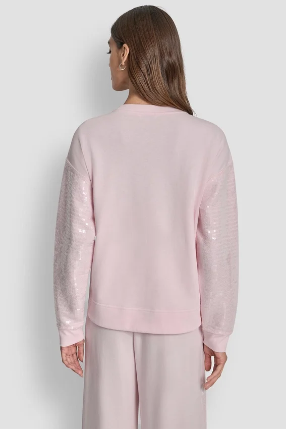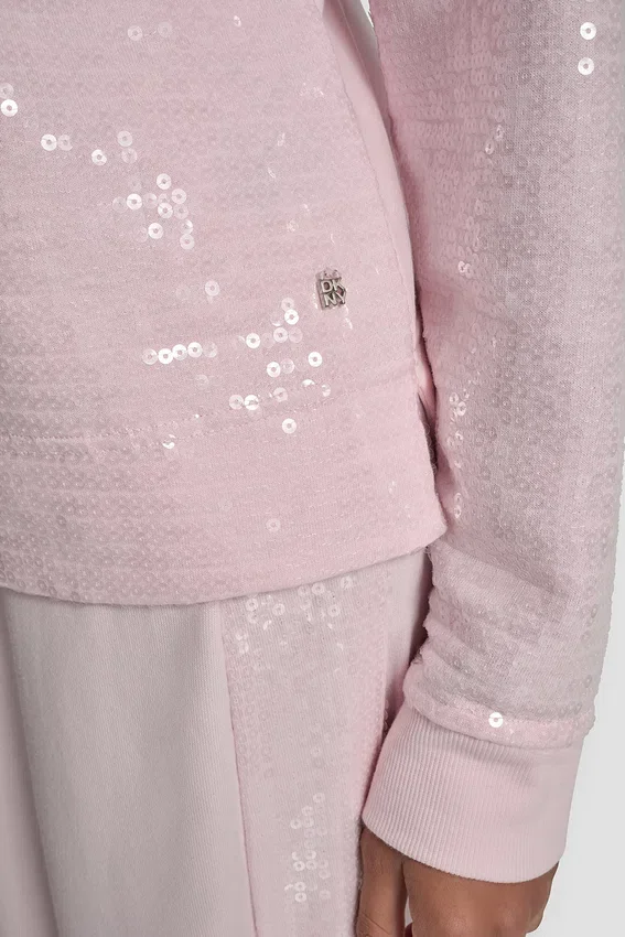 El brillo llamativo se une a la comodidad cotidiana en esta sudadera de corte holgado, adornada con adornos de lentejuelas para darle un toque sofisticado a la ropa casual.