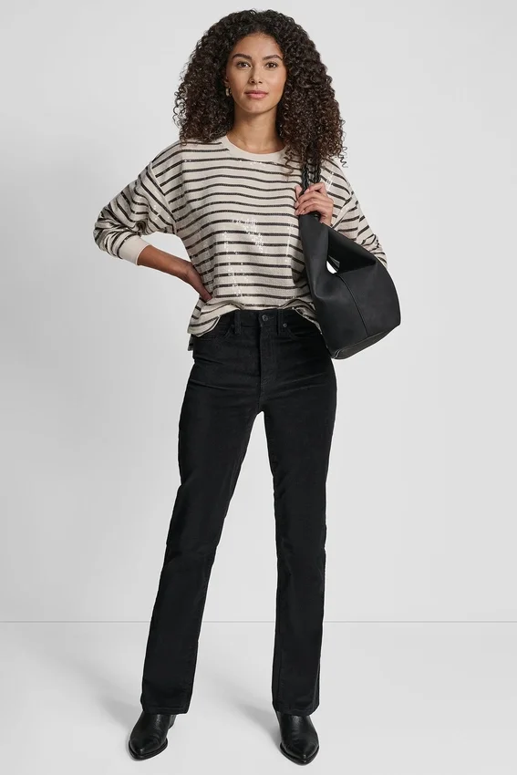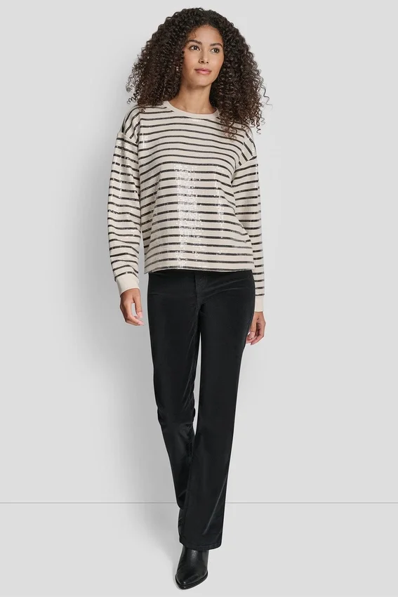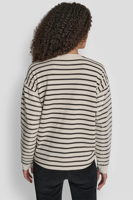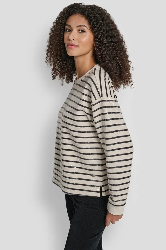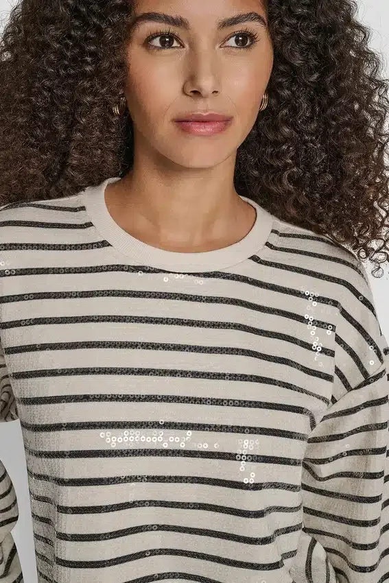 El brillo llamativo se une a la comodidad cotidiana en esta sudadera de corte holgado, adornada con adornos de lentejuelas para darle un toque sofisticado a la ropa casual.