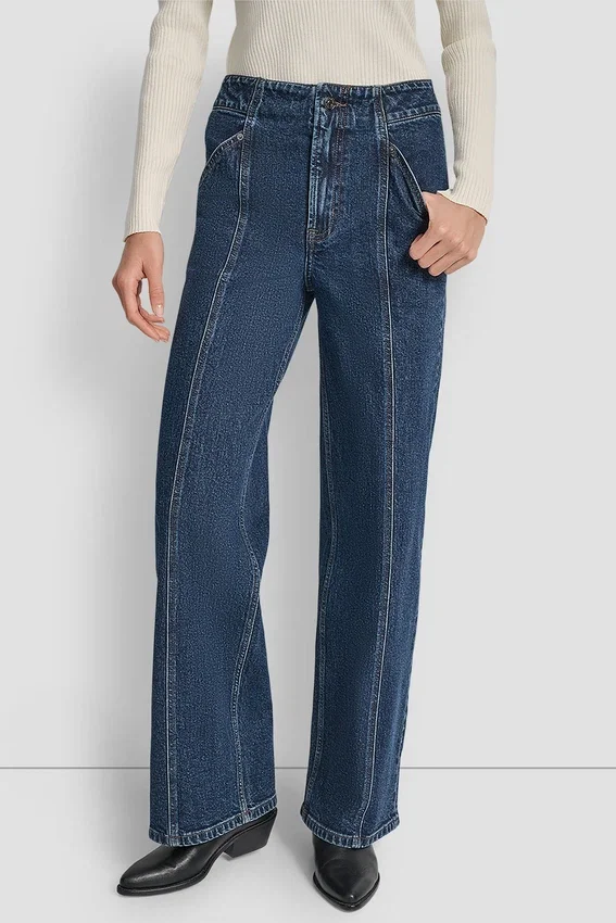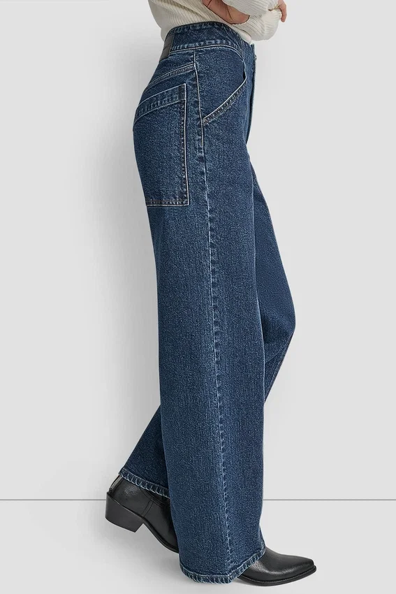 Vaqueros cargo de talle alto con costuras y pierna ancha, tiro de 32 pulgadas