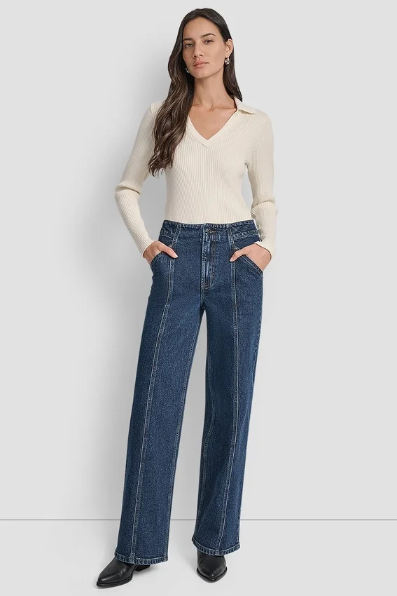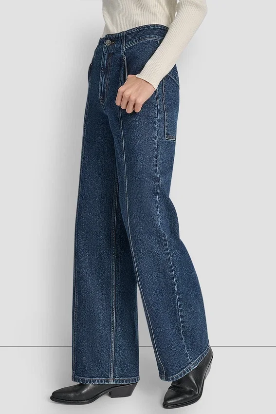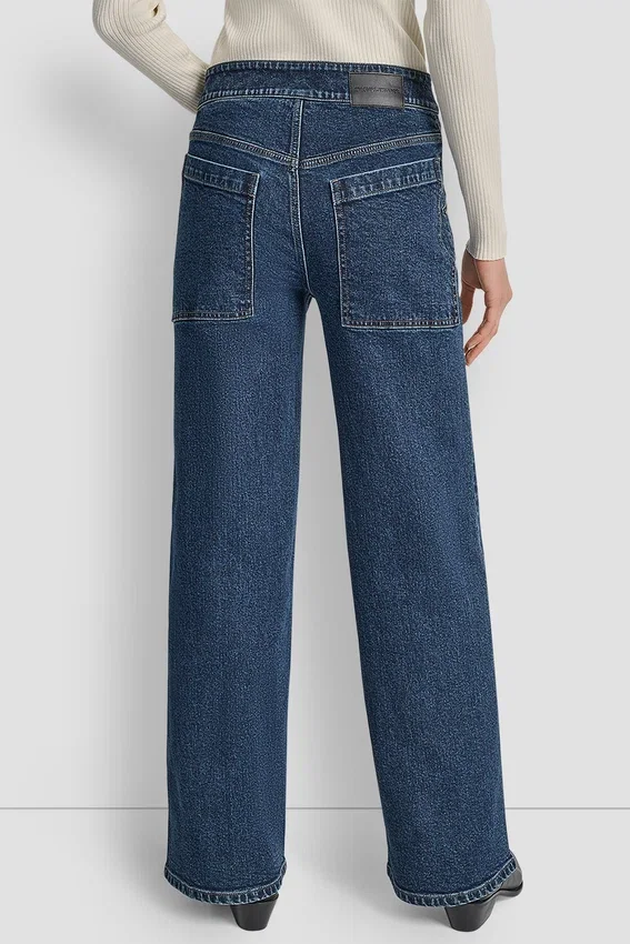 Vaqueros cargo de talle alto y pierna ancha de DKNY Silueta de talle alto y pierna ancha Cierre con cremallera y Botones Dos bolsillos delanteros y dos traseros Tejido vaquero suave y duradero Sin forro Lavar a máquina en frío, ciclo delicado con colores similares; secar en secadora a baja temperatura; planchar a temperatura media si es necesario; usar solo blanqueador sin cloro cuando sea necesario Importado N.º de estilo: Dj5