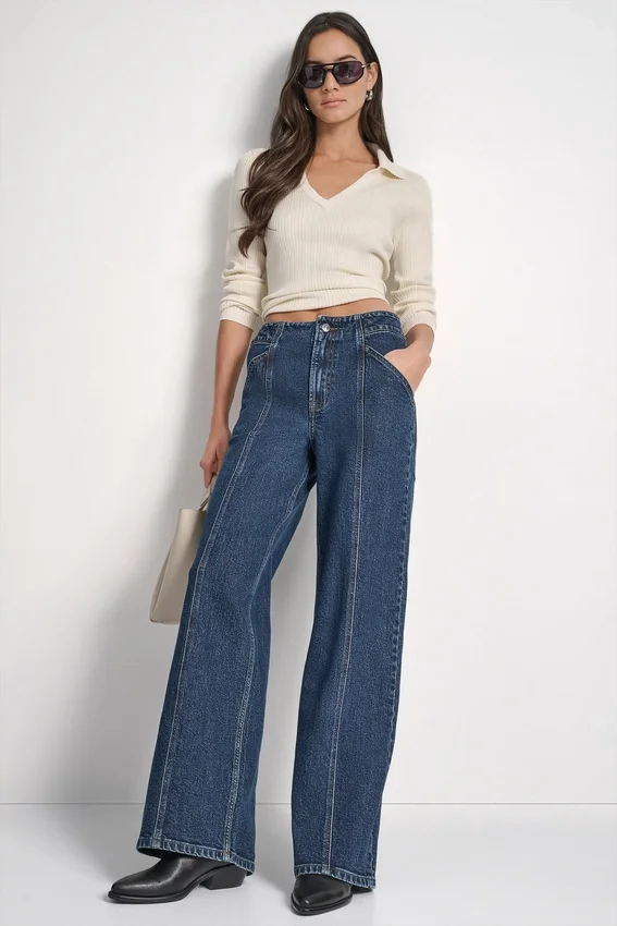 • Vaqueros cargo de tiro alto y pierna ancha de DKNY