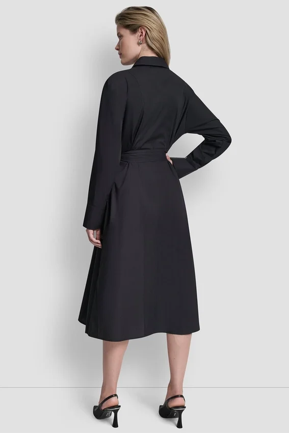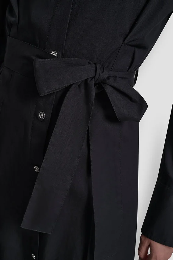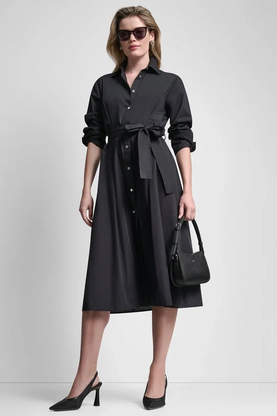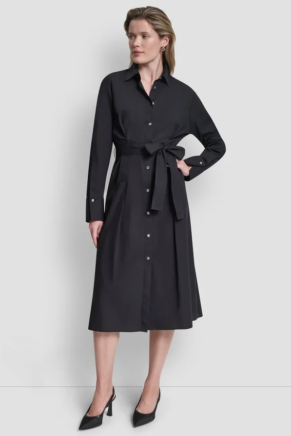 Un vestido camisero atemporal y versátil para el día a día. Este modelo midi de manga larga está confeccionado en popelín de algodón de tacto fresco, cuenta con una tapeta frontal con botones y un cinturón extraíble para marcar la cintura.