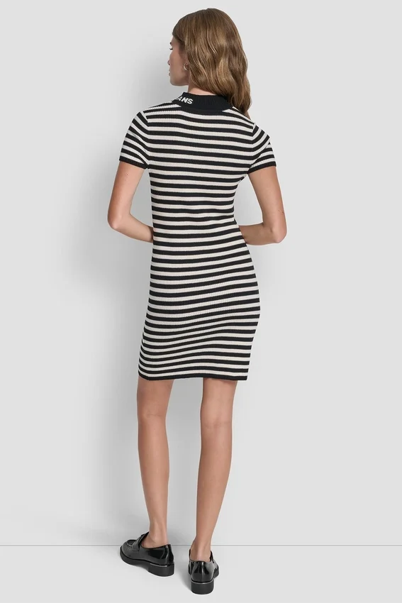 Cuello alto, cierre sin botones, mangas cortas, silueta ajustada, largo mini. La longitud del Hps varía según la talla (basado en la talla S; aumenta 1/2″ por talla). Estampado de rayas y Lúrex. Tejido: mezcla sintética con Lúrex. Lavar a mano en agua fría con colores similares; no usar lejía; secar en horizontal; planchar a baja temperatura si es necesario. Importado. N.º de estilo: Dj6R0998