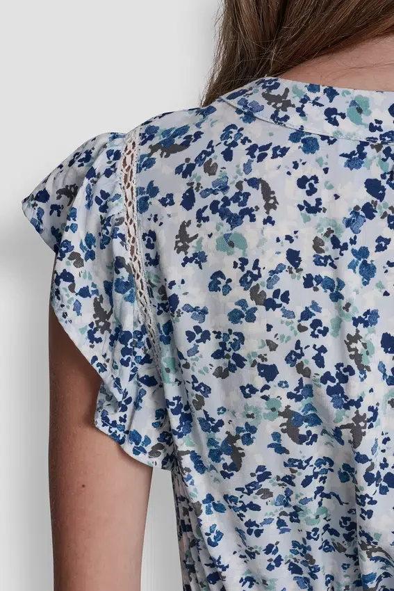 Vestido corto con mangas con volantes, diseño sin cremallera, escote en V, cintura fruncida con inserciones de encaje, sin forro. Tejido: 100 % viscosa de rayón. Cuidados: Lavar a máquina en frío, ciclo delicado. Usar solo blanqueador sin cloro cuando sea necesario. Secar en secadora a baja temperatura. Planchar a baja temperatura si es necesario. Importado. Estilo n.º: Dj6D9177