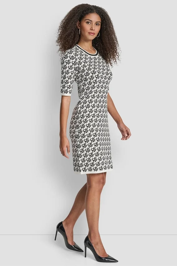 Vestido de jerséu de manga corta con intarsia y logotipo