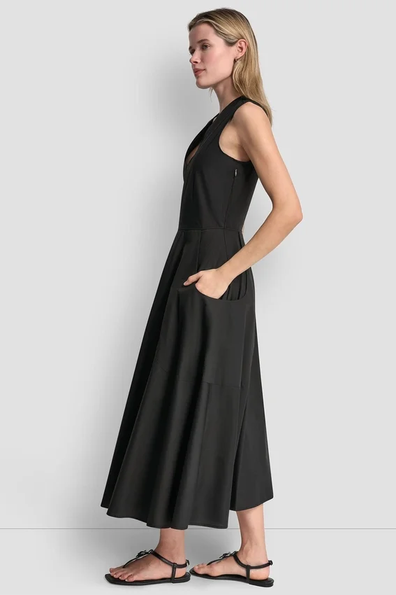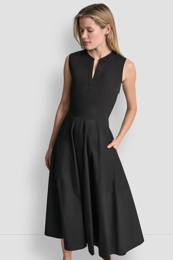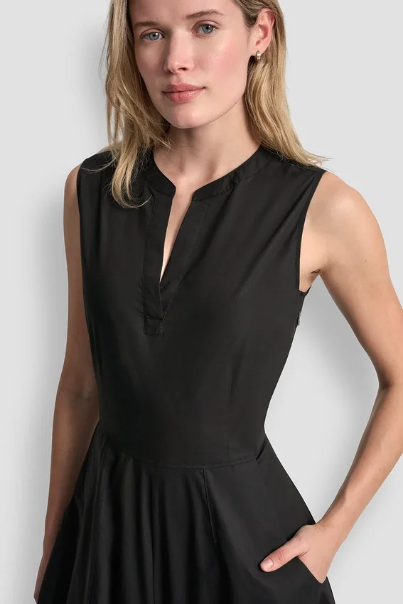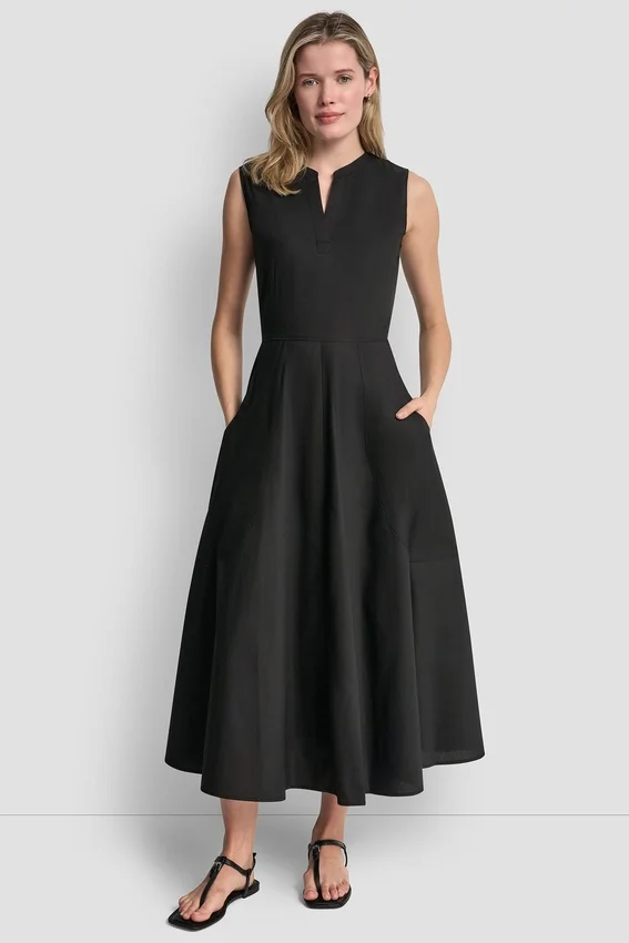 Elegante y moderno, este vestido midi sin mangas está confeccionado en popelín de algodón estructurado para ofrecer un tacto pulido y transpirable. Diseñado con un escote inspirado en el estilo Henley y bolsillos aplicados, ofrece un look limpio e inspirado en la ropa utilitaria con una versatilidad natural.