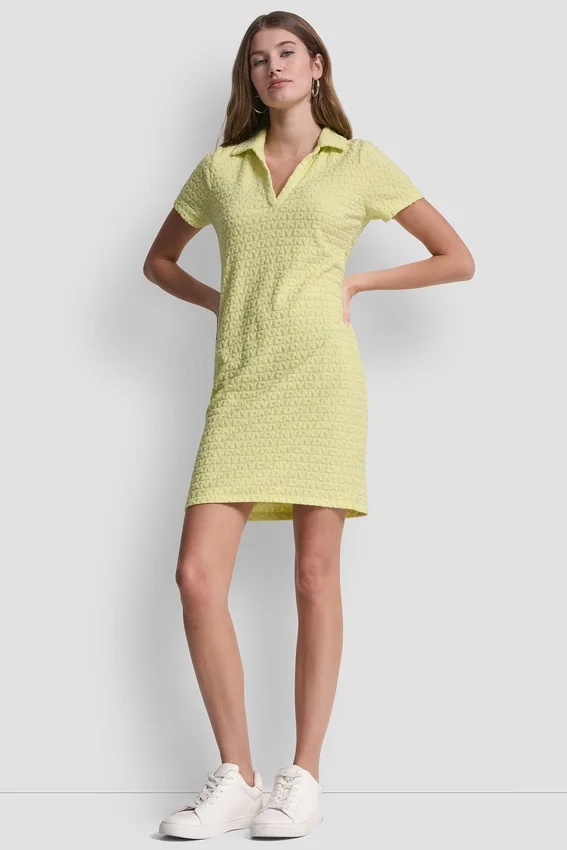 Una opción deportiva pero elegante, este vestido polo de jacquard con logotipo cuenta con un cuello abierto y una silueta mini elegante para un estilo desenfadado desde el día hasta la noche. De estructura suave y con la elasticidad justa, se mueve con facilidad a la vez que mantiene un corte ajustado y favorecedor.