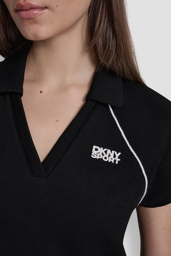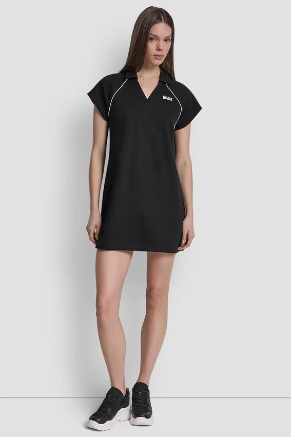 Vestido mini polo de manga raglán corta, cuello abierto, cuello en V y ribete con el logotipo de la marca. Se pone por la cabeza. Sin forro. Mezcla de algodón: 60 % algodón, 40 % poliéster. Lavar a máquina en frío con ciclo delicado. No limpiar en seco. Secar en horizontal. Importado. N.º de estilo: Dp6D4943