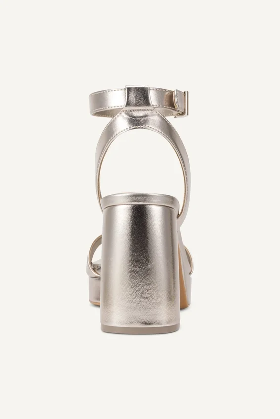 Diseñadas para realzar los looks de noche y las ocasiones elegantes, estas sandalias tobilleras cuentan con un tacón grueso que equilibra un estilo llamativo con una estabilidad segura. Su silueta elegante y su acabado metálico las convierten en una opción perfecta para vestidos, conjuntos de sastrería y todo lo demás.