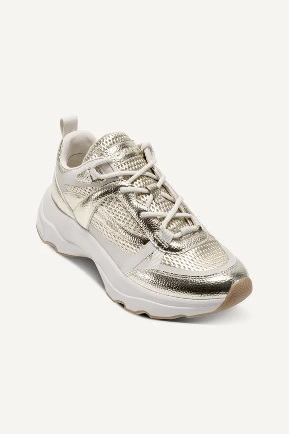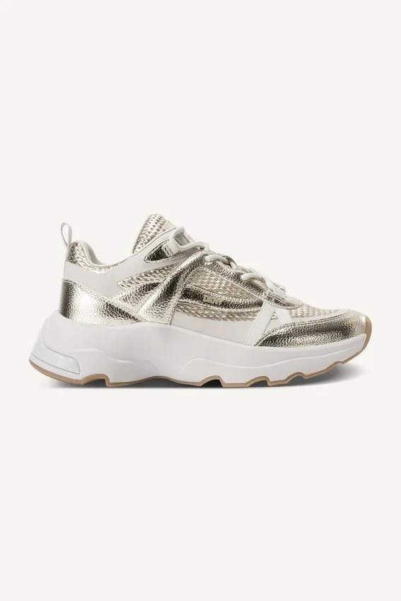 Zapatillas deportivas Juna con bloques de color y ribetes metálicos; Puntera redonda; Cierre con cordones; Parte superior forrada de imitación de piel metalizada con textura: 100 % caucho (poliuretano); Suela de imitación de cuero: 100 % caucho (poliuretano); forro textil: 100 % poliéster. Limpia las manchas de la parte superior con agua jabonosa y un cepillo suave; limpia la suela con pasta de bicarbonato de sodio. Seca al aire